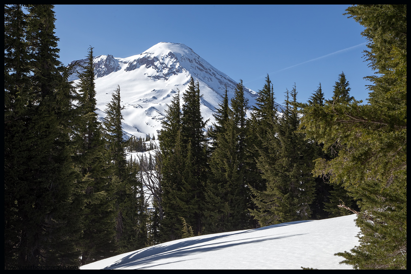 Back at treeline, we stopped for a quick break, then skied sticky snow over rocks, trees and dirt down to the trail at about 6000 feet. A three mile hike brought us back to the cars at the trailhead at 5:00, where well deserved cold beer was waiting. As the sun went down behind the hills, the temperature dipped down and reminded us that spring was not quite here, but given the conditions on the day, I think we could have made a strong argument otherwise. Hopefully the snow sticks around on the high peaks for a little while, otherwise it’s gonna’ be a long, long summer. Here’s a parting shot from the trip of Middle Sister in the shadows….