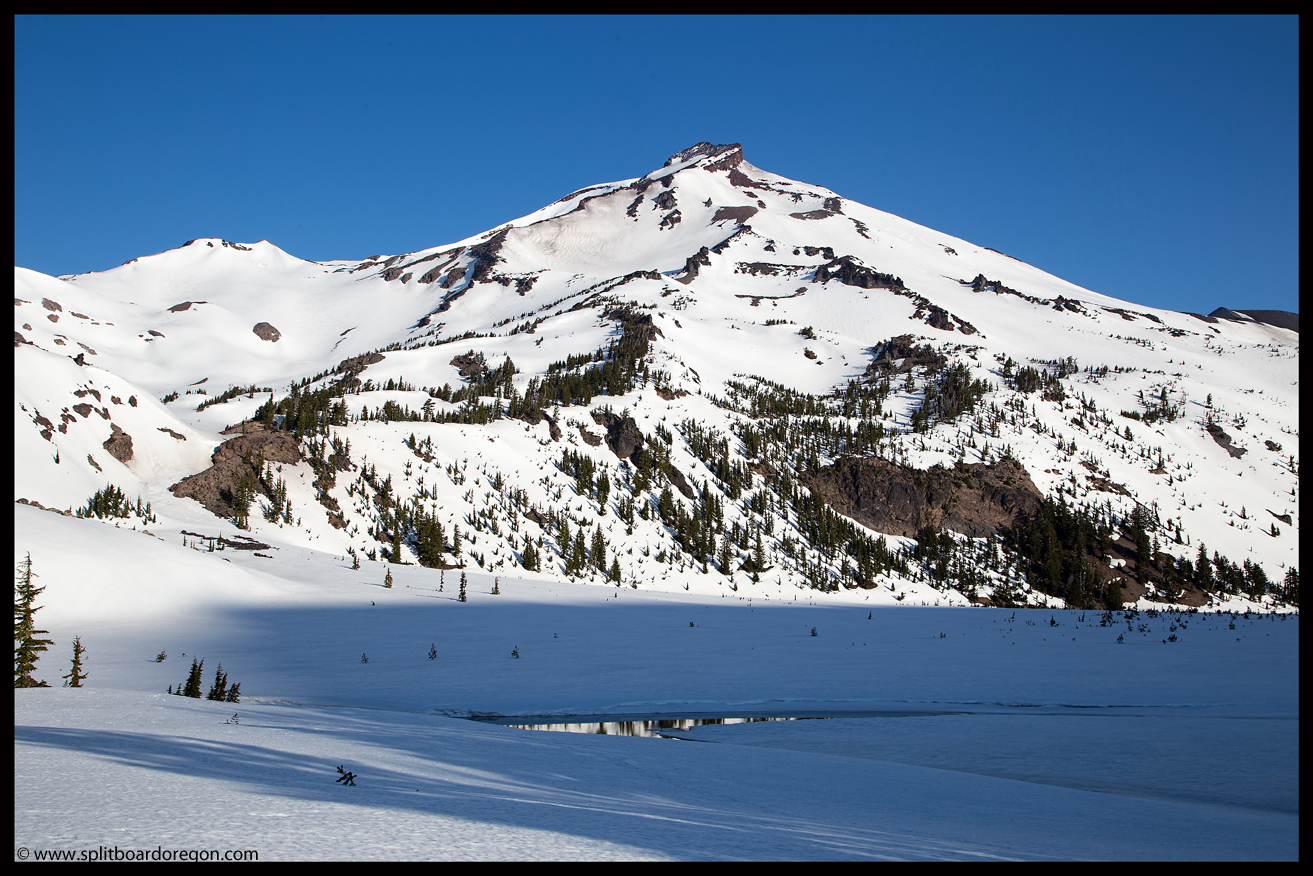 The Prouty Headwall is a line I’d been wanting for a few years, and with the weekend’s forecast calling for high pressure and warm temperatures, the timing looked right to give it a try. I left work on Friday around 11:00, and stopped at Odell Lake to pick up Dan, who’d spent the night at his cabin after several days of skiing around Mt Lassen. After loading gear in my Suby, we hit the road and arrived at the trailhead at 1:30, and found Joe already there. A short time later, with gear packed, we set out for Green Lakes to camp for the evening….