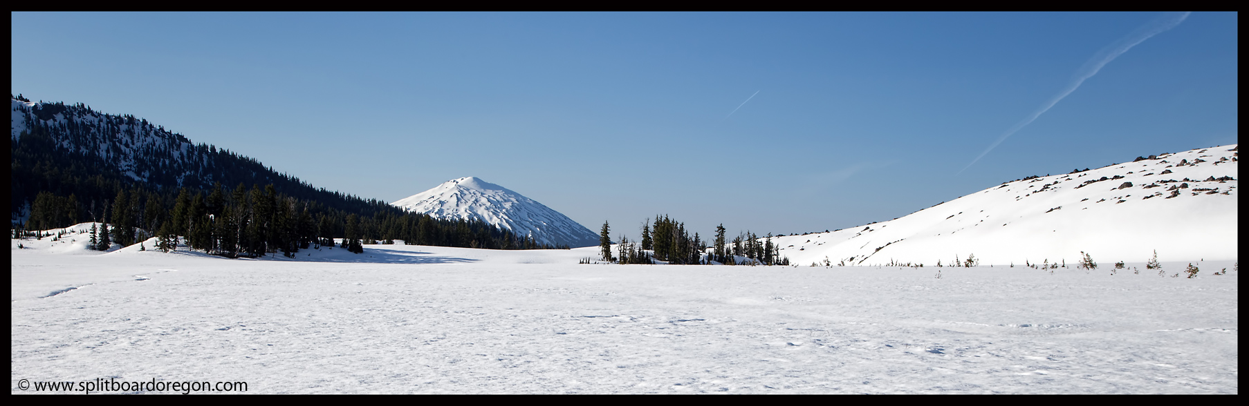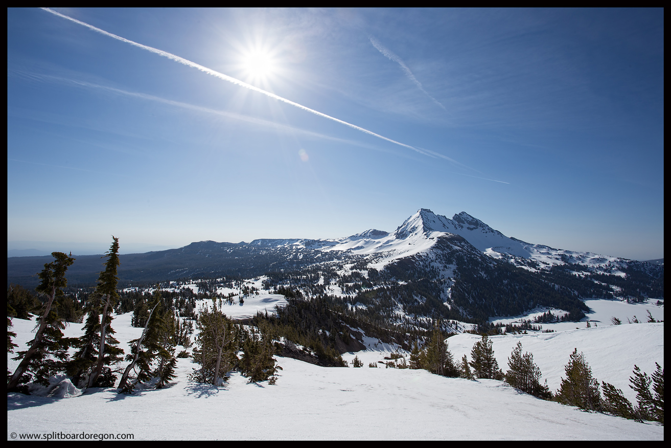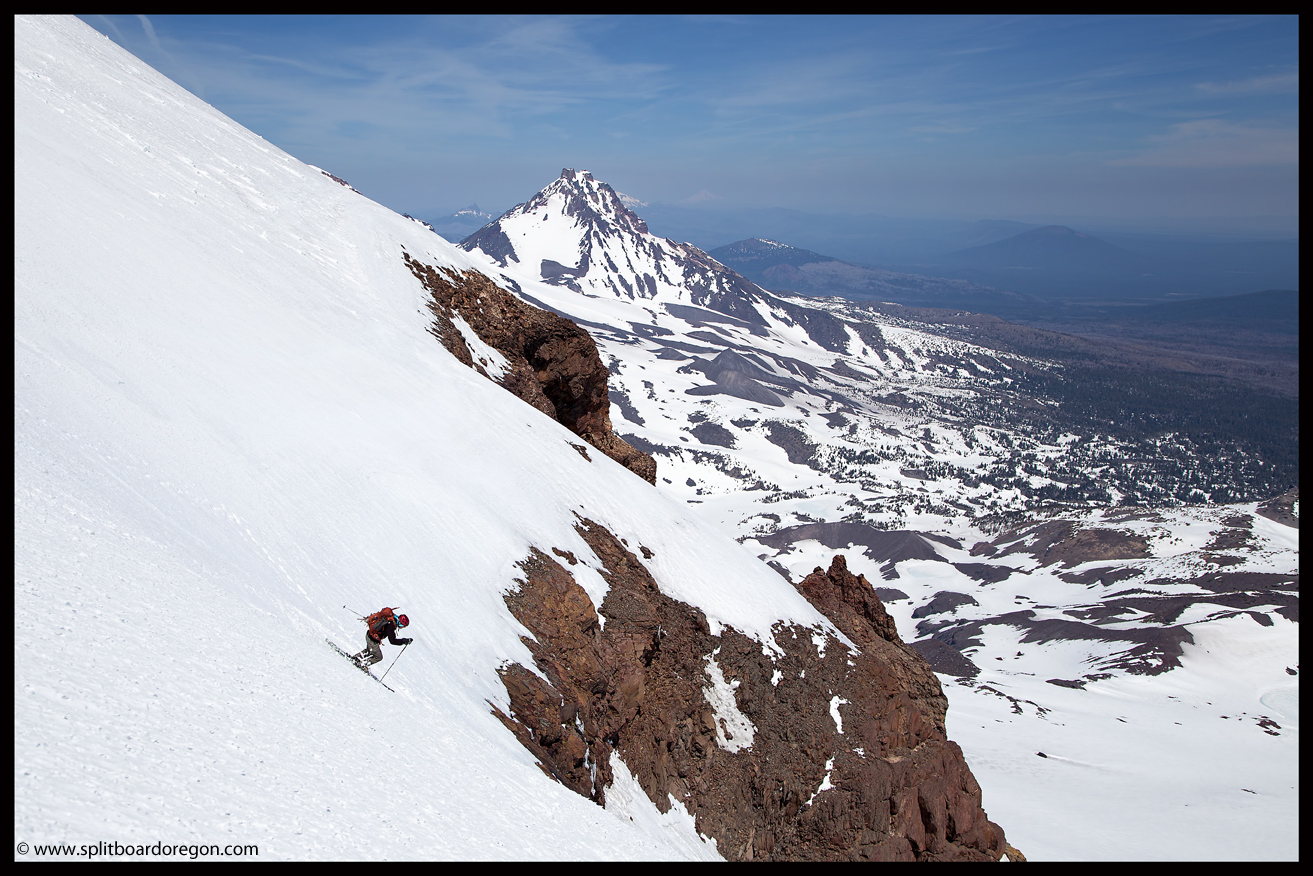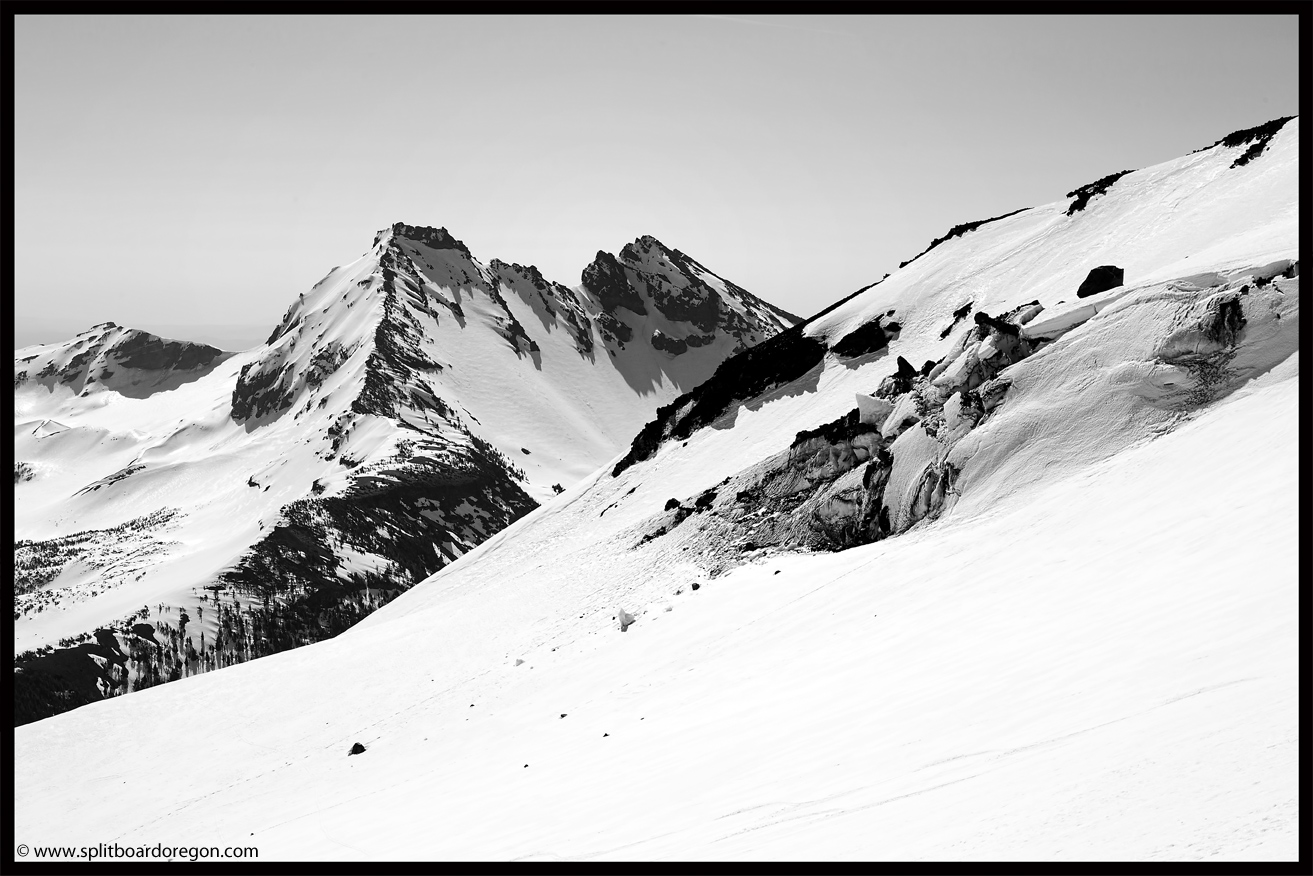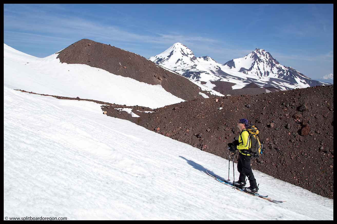 The snow on the east facing slopes above Green Lakes was just starting to corn as we crested the top of the ridge and got our first view of the Prouty and the Middle and North sisters beyond.