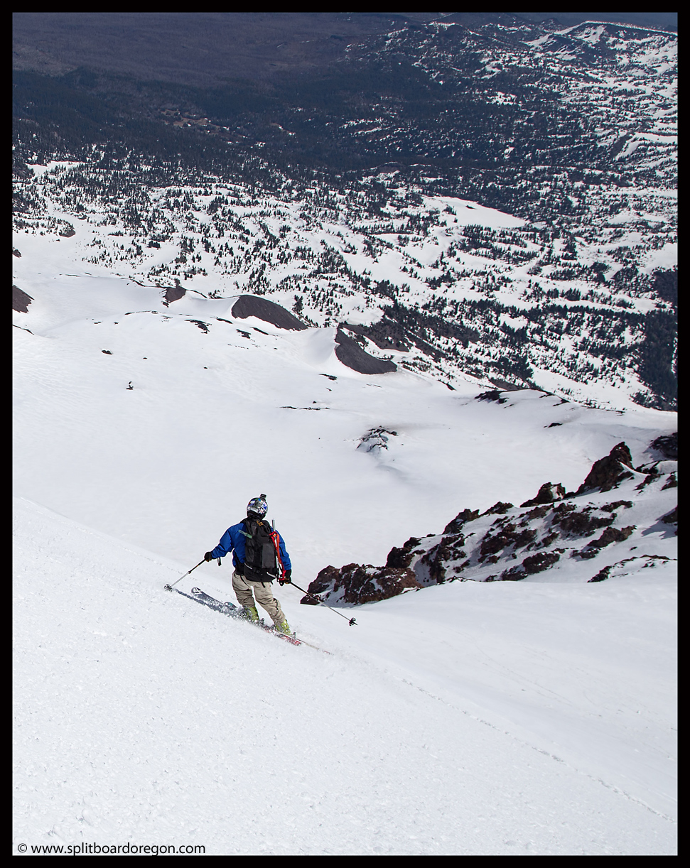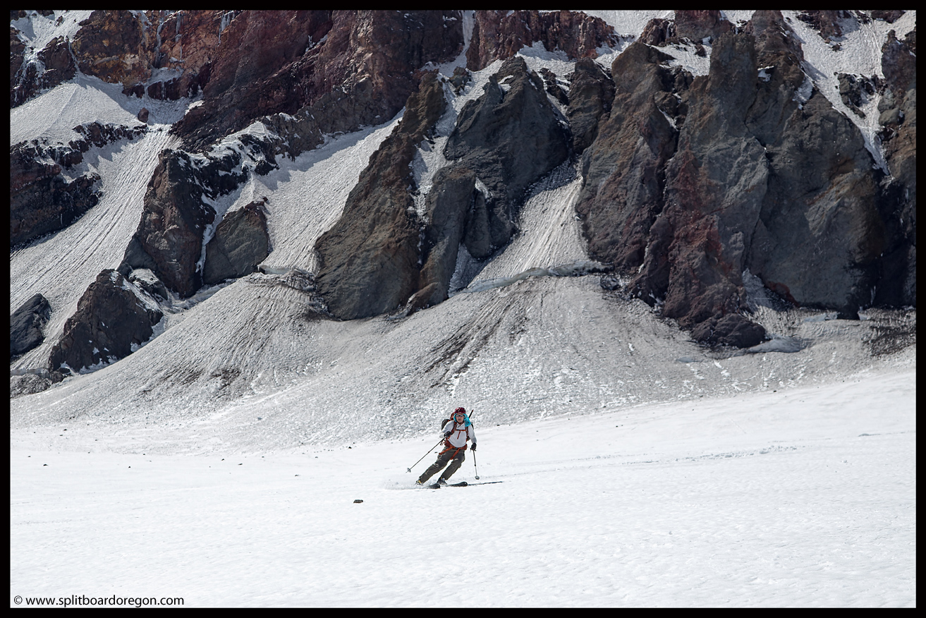 The glacier resembled more of a large snowfield than glacier, with the exception of one large jumbled icefall around 8,500 feet, which made for some cool pictures with Broken Top as a backdrop….