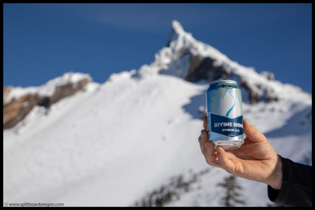 We worked down to the bottom of the bowl, eventually switching back over to skins for a short skin out to the ridge above to make our exit. Sitting atop the ridge, enjoying the warmth of the sun while eating some lunch and drinking a beer, I felt pretty fortunate to out in the mountains on such a beautiful day. My beer of choice for the day — a Divine Shine by Hop Valley — seemed fitting for the day.