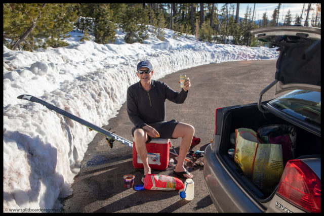We switched back from skins to ski mode, and headed down the ridge for the exit back to the car. The turns along the way were a mix of soft snow up high and then firm, quick snow down low. I was stoked on how quickly we were able to ski out, especially on the crack headed portion of the trail down low, and soon we were unloading our gear at the car, enjoying another beverage in shorts and flip flops.