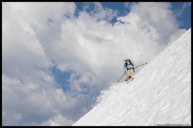 Turns out, the snow was in tip top shape, and we ripped the corn from the saddle all the way to the bottom. The upper section was pretty good, and then from the rollover onto the glacier proper the snow was absolute money. I shot pictures of the skiers as they came down, and Dan grabbed the camera from me and returned the favor as well….