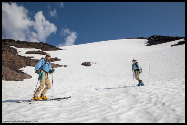 We milked the glacier for all it was worth, skiing down lower than in previous summer trips. It was good right to the end, and then it was time for the long boot back up to the saddle under the warm sun.