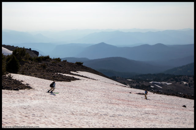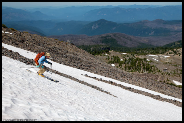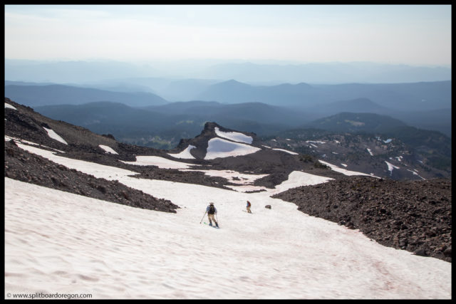 The hike out was mostly uneventful. We ended up getting checked again by a ranger just before the lava flow, but other than that it was just lugging heavy packs for 5 miles back to the car. The last mile is always the longest, but eventually we made it back to the trailhead, where some (mostly) cold beer was waiting. After changing into flip flops and shorts, Joe and I fired up the grill and threw a few brats on. Dan joined us a few minutes later, and it sure felt good to laze around the car and enjoy a cold beverage. The grilled brats definitely hit the spot, and capped off another great trip to Middle Sister. With that, we called it a trip, and loaded gear into the car and headed on down the road. Although I’m not sure when I’ll be back for more summer turns on the beautiful glaciers on the Middle and North Sisters, I can say with certainty that I’m already missing the scenic views and smooth turns in one of the most special spots in all of the Oregon cascades.