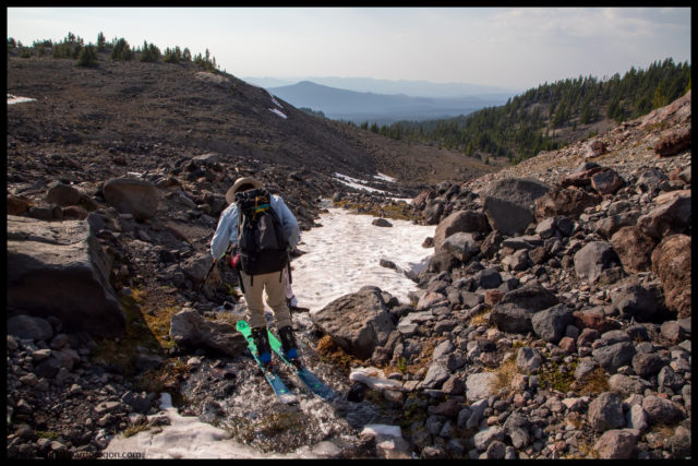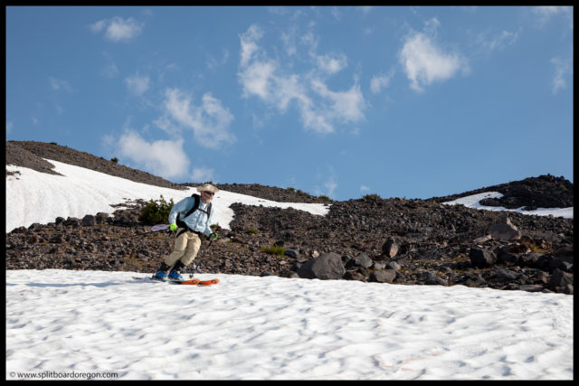 The ski down the middle and lower snowfields was good fun, and like the day before, we worked our way down the draw and skied the patches back down to the trail. Once the skiing was over, we made the short hike back to camp and got ready for dinner.