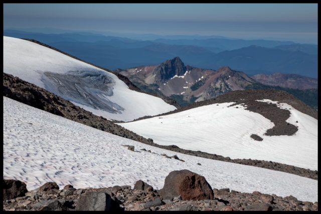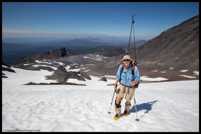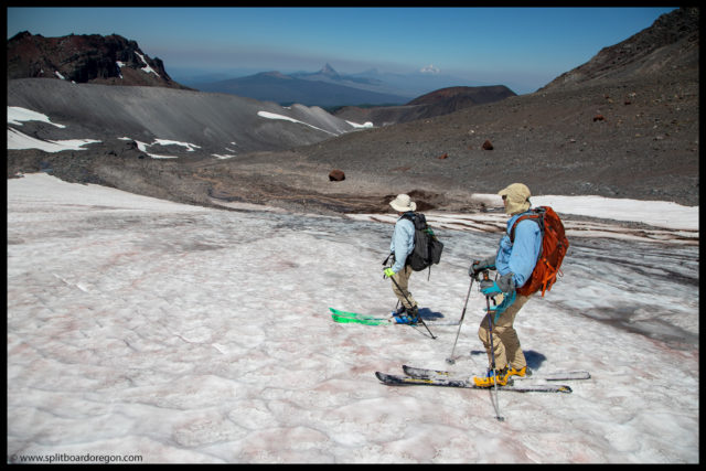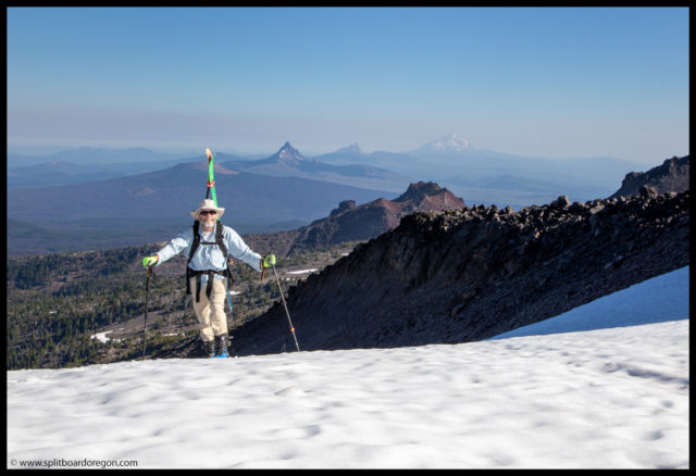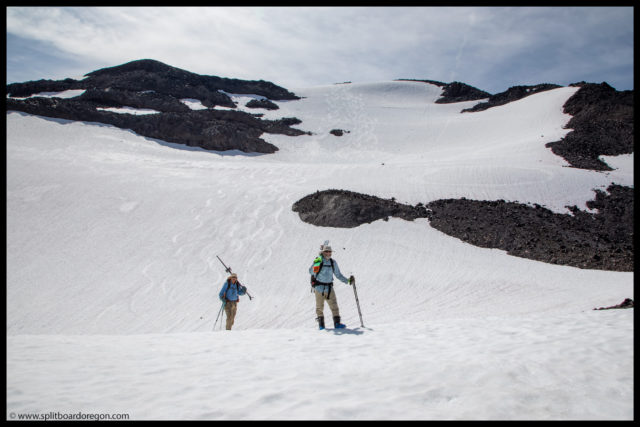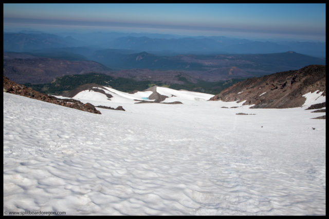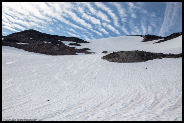 The Renfrew was in decent shape, and made for easy traveling. We worked our way up the glacier (really just a permanent snowfield at this point in time), and eventually up to Prouty Saddle. Once at the saddle, we were afforded the commanding views to the east with Broken Top in the distance.