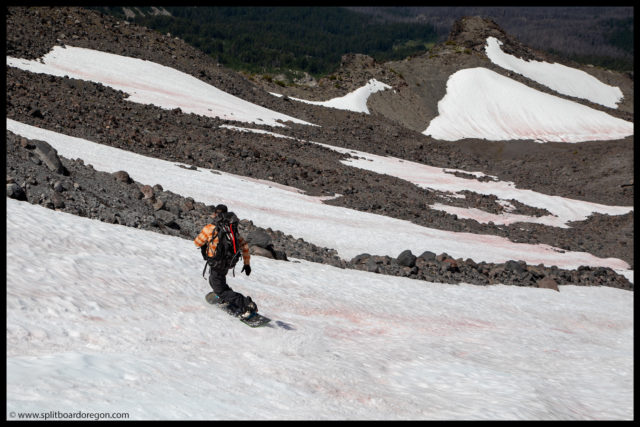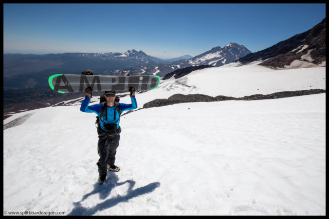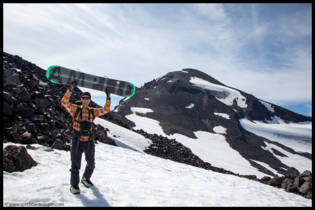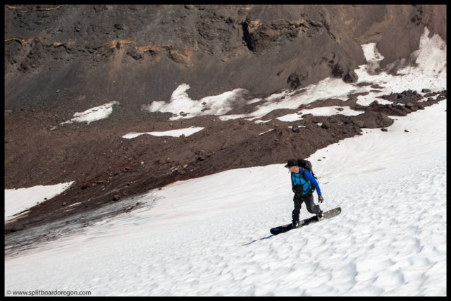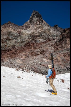 At the bottom, it was time again to put the boards on our packs and start the long bootpack back up the glacier. The view back to the north however of the glacier and the volcano line up made the hike out pretty enjoyable.