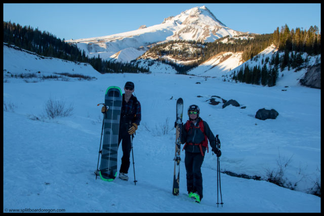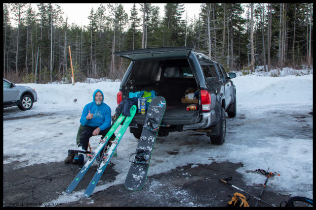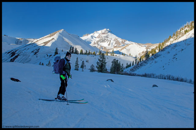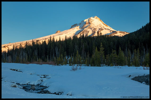High pressure was in the forecast, so Joe, Jack and I made plans to head up to Mt Hood for a day of turns. The plan was to tour out of the White River area and head up from there. Joe and I met at the cop shop in Albany early and headed up I-5 and then highway 26, making our way to the White River Snowpark around 7:45 am. While waiting for Jack to arrive, I walked a few few from the truck and snapped a few photos of Hood in the early morning light.