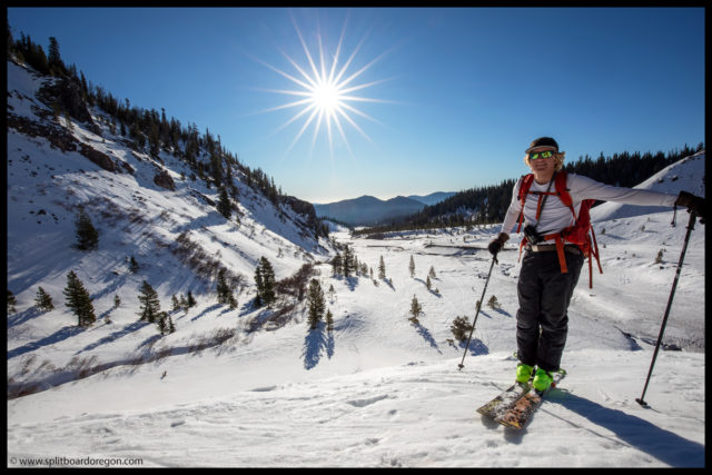 Once back on our skin track, we made some fun turns down to the flat part of the canyon below, and then were able to slide the rest of the way out to the car, sans the one mandatory creek crossing.