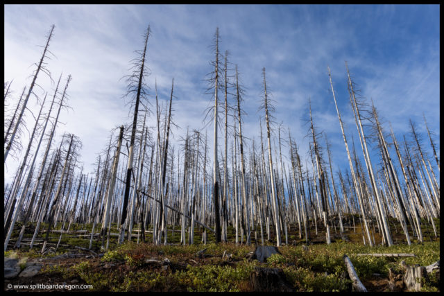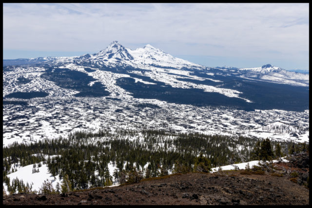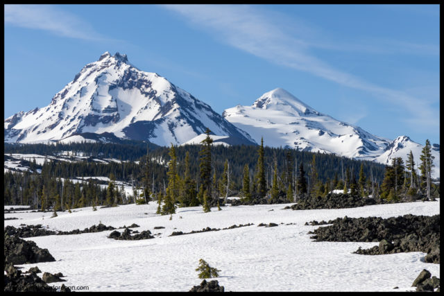 The ride up the hill was quite pleasant, and quite a bit easier, at least from my memory of it from when I did Black Crate with John a few years earlier. Soon Joe and I made it to the Black Crater trailhead, and then pressed on, working our way through huge drifts of snow before eventually arriving at the top at Dee Wright. Once at Dee Wright, it was a downhill glide all the way to the trail.
