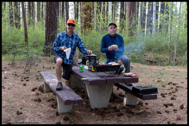 It was getting late by the time we reached the cars, and both Joe and I were hungry, so we headed down the road a short bit to a campground and found a picnic table that worked great to cook up some brats. Before long they were cooking up nice, and I was ready to enjoy another cold beer. The afternoon’s offering was a crisp and refreshing Oceanic Pale Ale from Pelican Brewing.