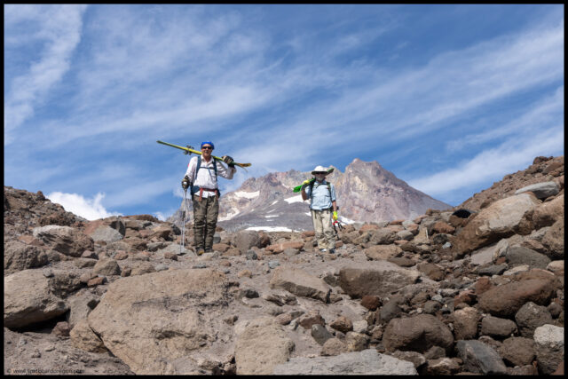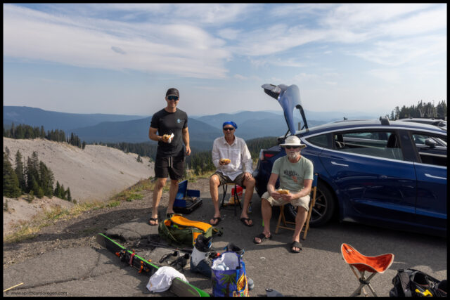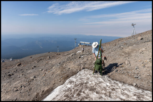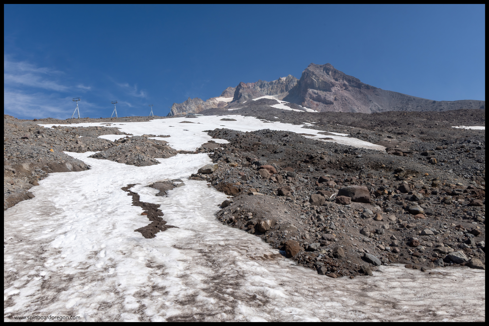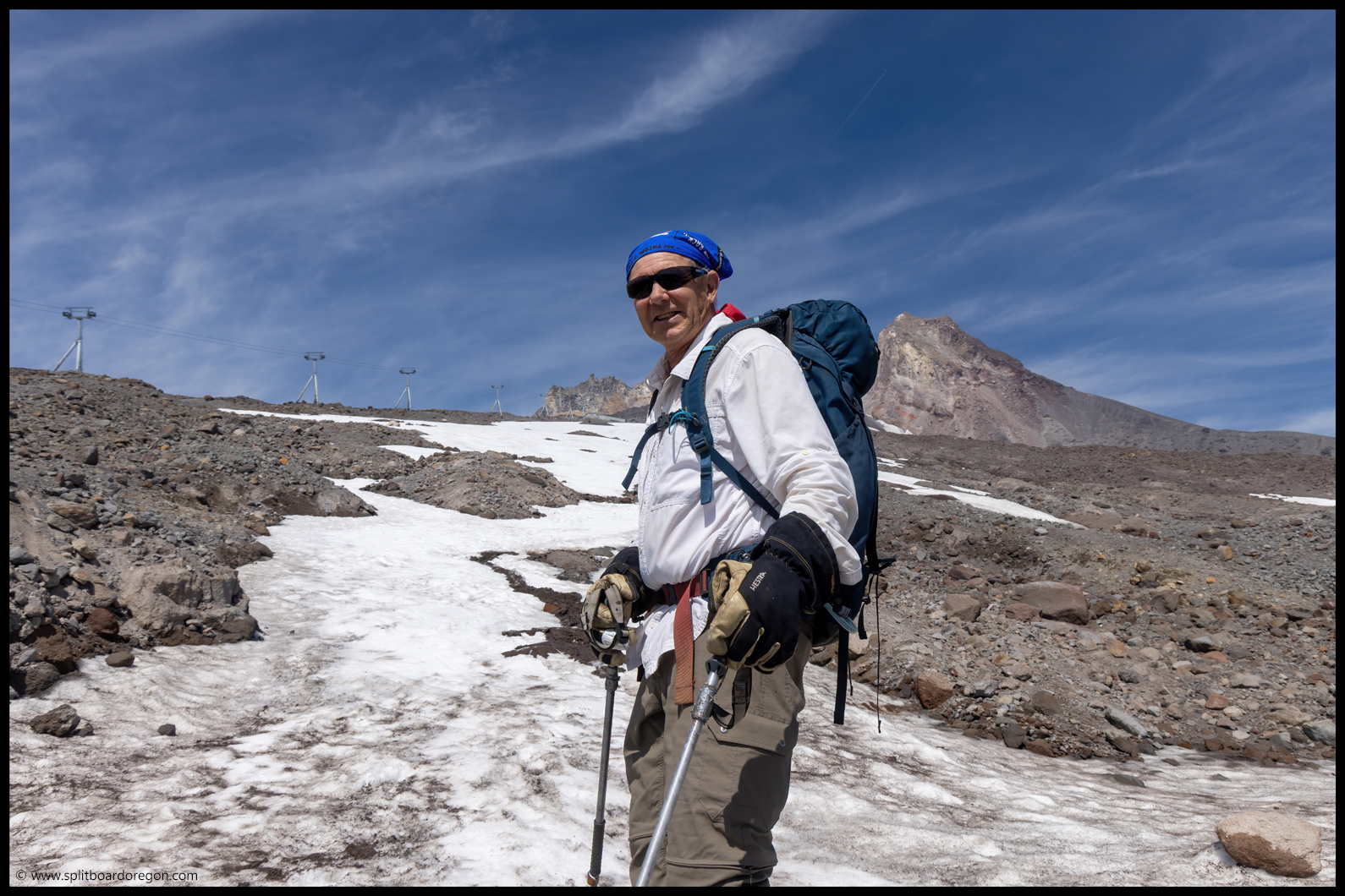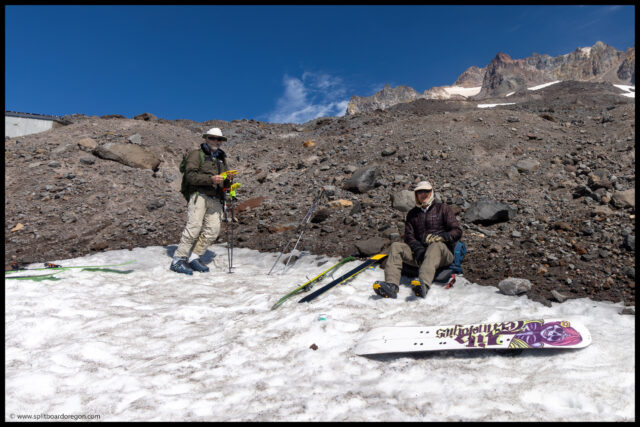The dog days of summer we experienced in July and August were finally over, and that meant it was time for some September turns. Dan, Joe and I made plans to head out on Labor Day to Mt Hood, and check-in on the snow conditions since they were rapidly deteriorating, at least from what we could see on the Timberline webcam. I met Dan early as usual at the Harrisburg exit on I-5, and we carpooled up to the cop shop and picked up Joe in Albany. After a brief stop in Sandy to charge, we pulled into the Climber’s Lot a little after 8:00 am.