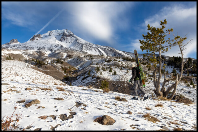 Once the snow ran out, it was time to throw the skis on the packs and head for the truck. While packing up, we met Lucas and Mallory who had also been up skiing. Turns out Lucas knew a few friends of mine from Bend, and we enjoyed some chitchat on the hike back to the parking lot together. A few minutes later, we were back at the truck, and it felt good to get out of ski and snowboard boots, and into some more comfortable clothes. Neither Joe nor I were in the mood for brats (even though we packed ’em), so decided to get a jump start on the drive home and hit the road. All things considered, it was a pretty great day on the mountain, and I was more than happy to have my November turns and my 240th month in the books. Below are a couple of parting shots from the day.