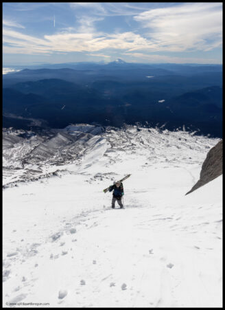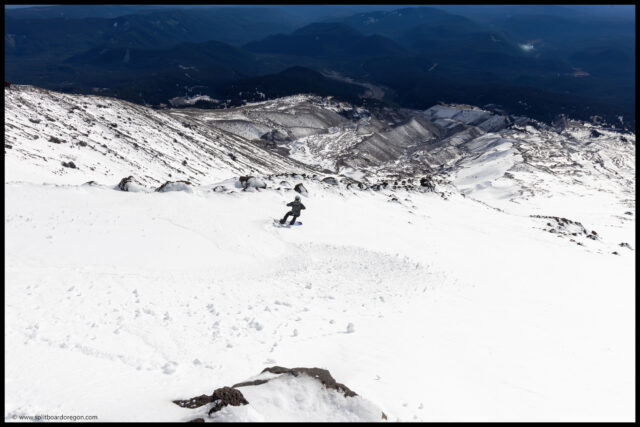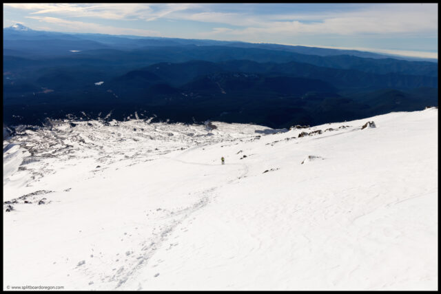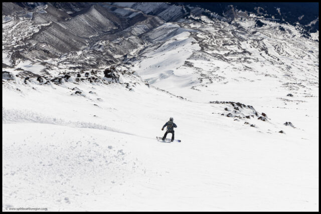 The coverage became a bit better as we worked our way up to the top of the Palmer, and from there we made the decision to head up to the White River to check out the snowfield, which held the smoothest looking snow that we could see on the mountain.