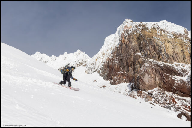 As we readied to drop in, Joe offered to take the camera and shoot some pictures of me as we descended, which was awesome, so I handed it over and once he was a few hundred yards down slope I started down while he fired off some shots, including the three pictures below…