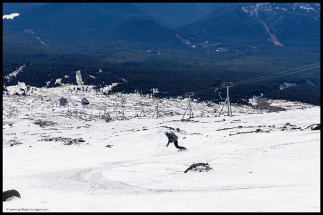 We worked our way down into the Palmer Canyon, and continued enjoying the smooth turns until we ended up back at Silcox. From there, we elected to ski the Mile Canyon. Conditions in the Mile weren’t the best, but it beat walking and we were able to slide to within a few hundred vertical feet of the lodge before running out of snow.