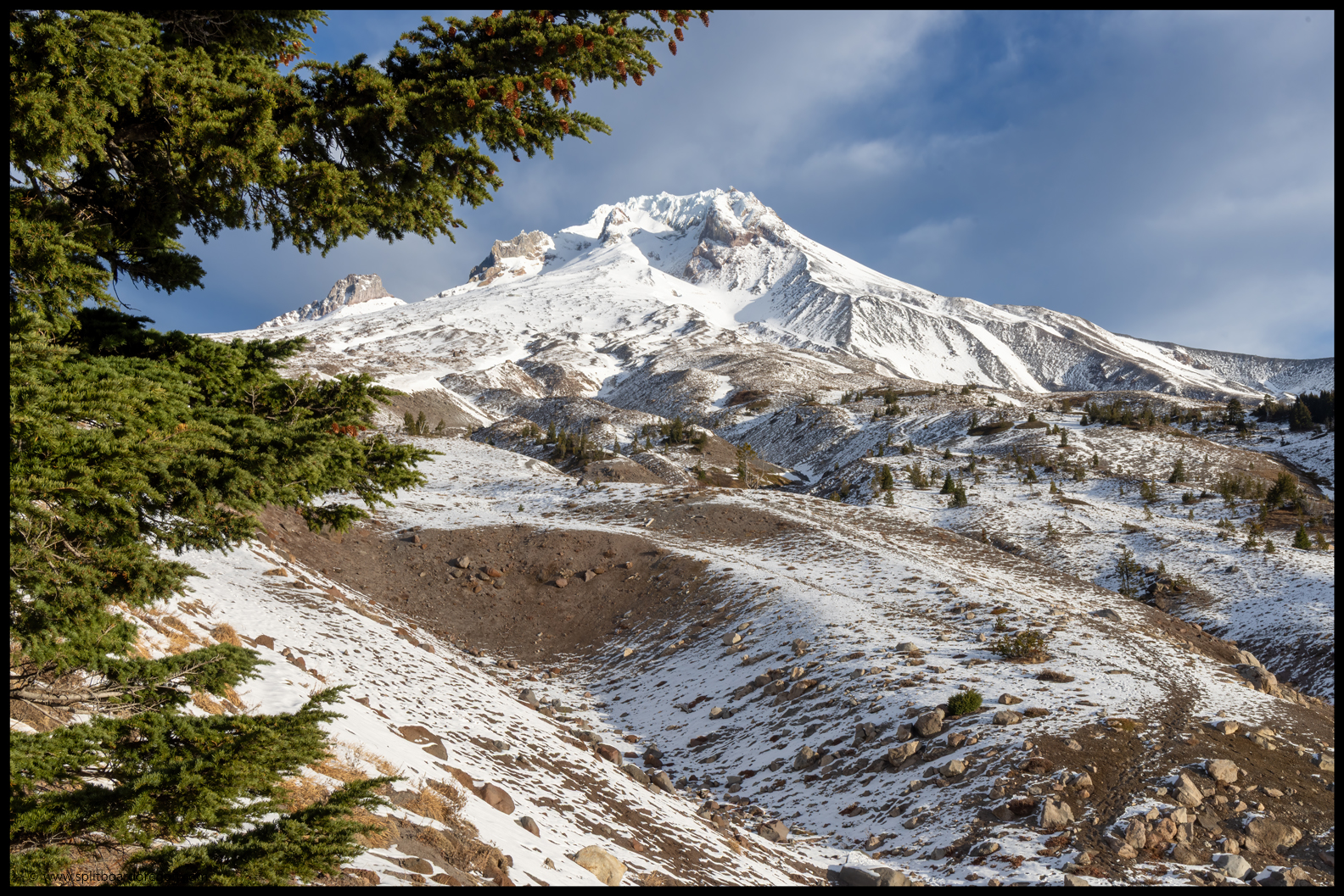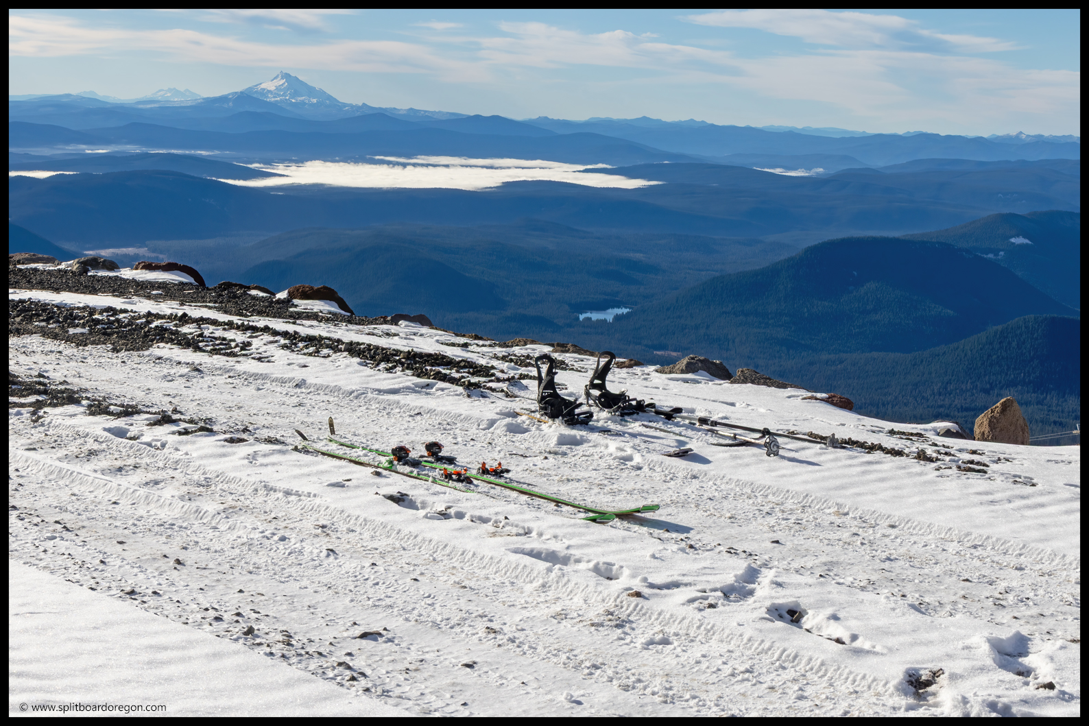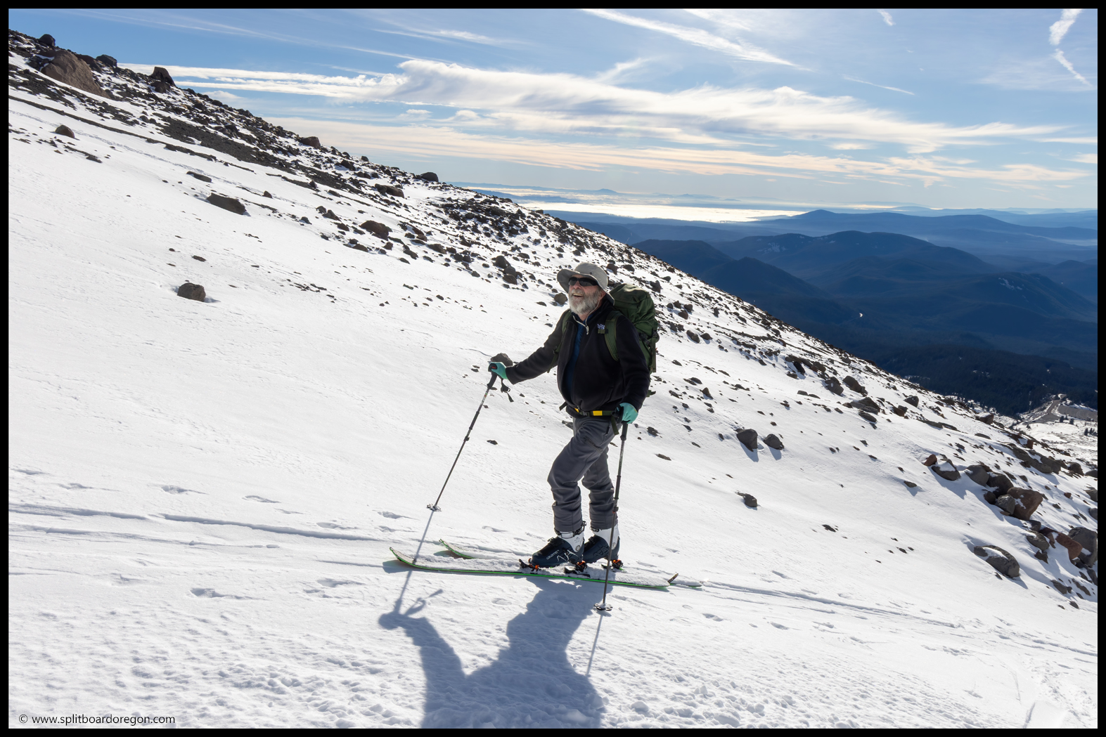 Once the snow ran out, it was time to throw the skis on the packs and head for the truck. While packing up, we met Lucas and Mallory who had also been up skiing. Turns out Lucas knew a few friends of mine from Bend, and we enjoyed some chitchat on the hike back to the parking lot together. A few minutes later, we were back at the truck, and it felt good to get out of ski and snowboard boots, and into some more comfortable clothes. Neither Joe nor I were in the mood for brats (even though we packed ’em), so decided to get a jump start on the drive home and hit the road. All things considered, it was a pretty great day on the mountain, and I was more than happy to have my November turns and my 240th month in the books. Below are a couple of parting shots from the day.