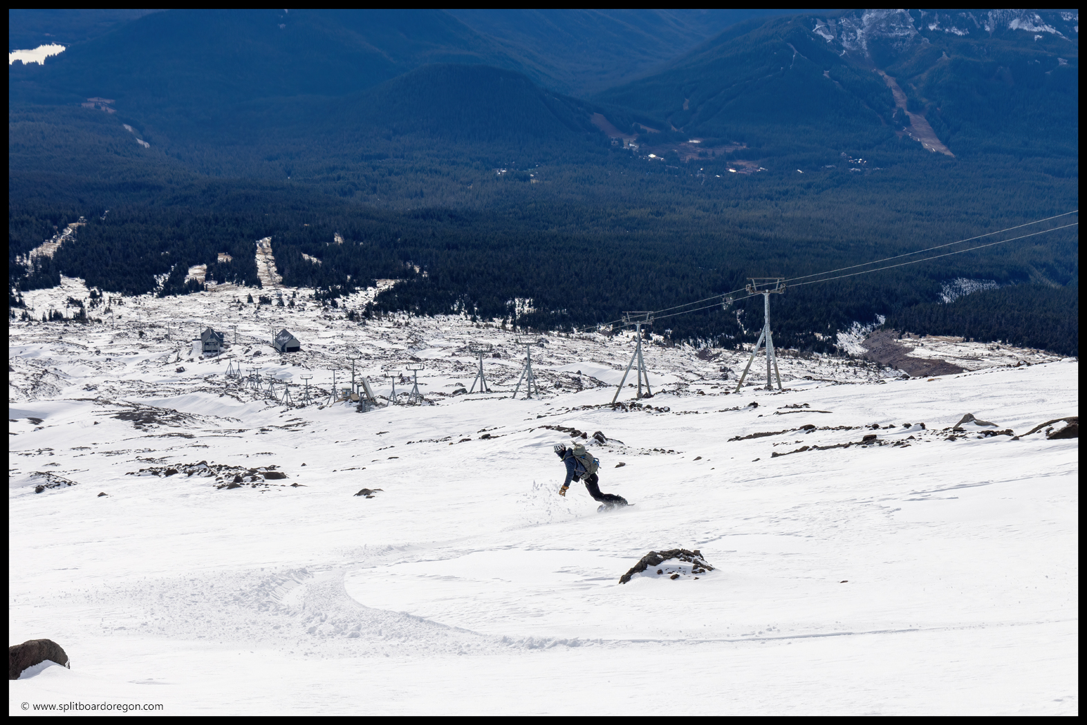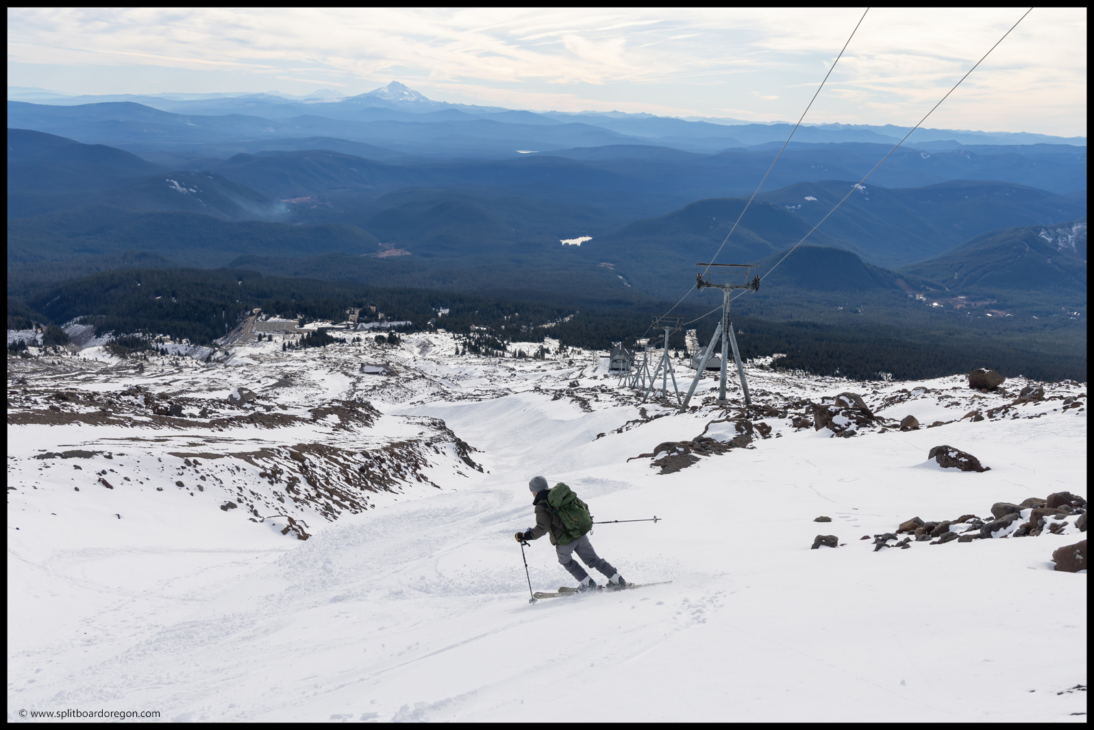 A few minutes and a thousand feet later, we were up at Silcox and enjoying a quick break along with the view before we continued up towards the Palmer. The firm snow made for easy traveling, and our hopes were that it would turn to corn a few hours later.