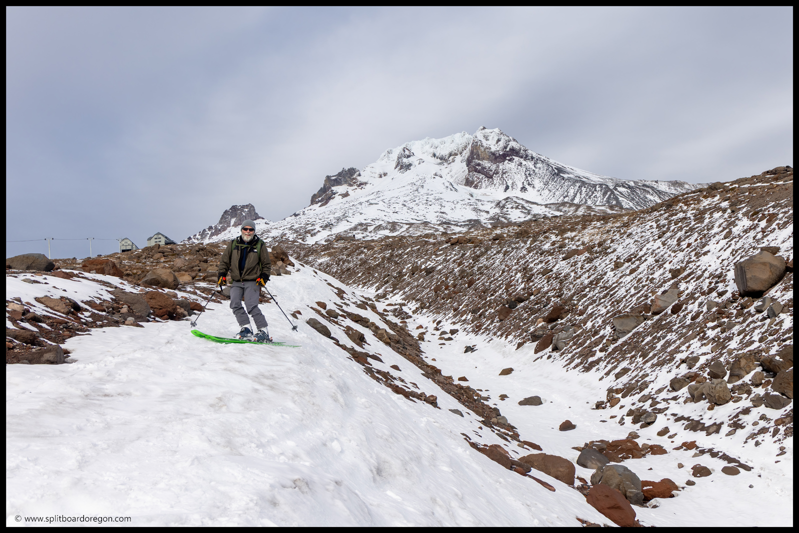 After thoroughly enjoying a two week vacation with the family in the Hawaiian islands, I was eager to get November turns in the books, which would mark a milestone Turns-All-Year month for me at 240. Joe was game to ski as well, so we made plans to head to Mt Hood to get get what little snow there was on the mountain. We met early at the cop shop and made the drive up I5, arriving at the climber’s lot to find the mountain pretty bare but plenty skiable.