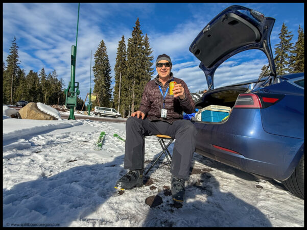 We rode the lift four more times for a total of 11 laps, with a combined vertical of over 1,000 feet, which Dan counted as legitimate to keep his streak alive (his usual number is 1,500 feet, but 1,056 would have to do for December). Satisfied with a great day of making turns, we ended the day by heading down to the Gold Lake snow park to grill up some brats. As usual, the brats hit the spot, and put the cap on an excellent day of skiing and riding at the Pass. Although it wasn’t big vertical, deep powder, or riding gnarly terrain, it will go down as one of my favorite days at the Pass and one that won’t soon be forgotten. Cheers to Dan for keeping his streak going. His consecutive month count as of December 2025 now stands at 362 months (30 years, 2 months).