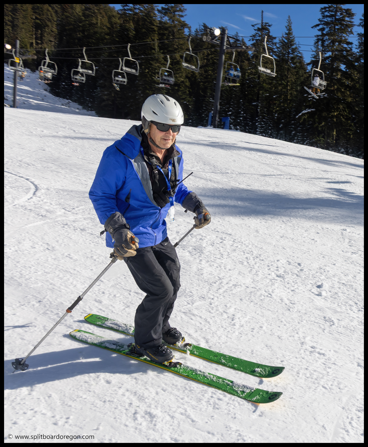 We loaded the chair without incident, and Dan unloaded without a problem as well. As soon as he took off, I could tell it was going to be a good day — it was like he was feeling 100%. I headed down and snapped a few photos as he skied by, and as usual he made the turns look effortless, despite being just over 6 weeks out from having a fully replaced knee.