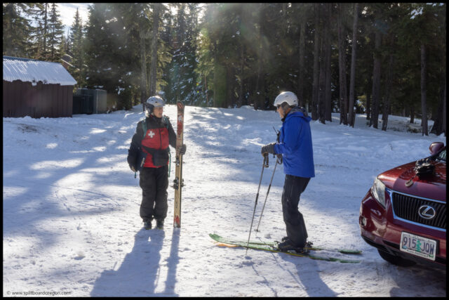 We ditched our gear near the patrol room, and set up shop on a couple of coolers behind Dan’s car. The sun was out and it was a beautiful day, and everything almost seemed to be normal, with the exception of the lack of snow in the ski area. There wasn’t even enough snow to make a berm from what had been plowed in the parking lot.
