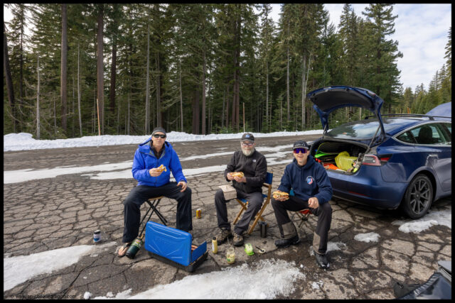 The final day of December finally arrived, and with it, so did much anticipation for whether or not we’d be able to get out and find some snow for Dan to ski on to keep his Turns-All-Year streak alive. After skiing in early November, Dan had knee replacement surgery around the 12th of the month, and whether or not he’d be able to keep his streak going was very much in question. He’d been experiencing some stiffness and soreness during Christmas week, but fortunately he was feeling good during the last week of December and the weather aligned for the Pass to have (only) the Sleepy Hollow chairlift spinning, so we made plans to head up and see if he could make a run or two. Joe and I met early at Dan’s house, and after loading our gear into his Tesla, we headed up to the Pass.