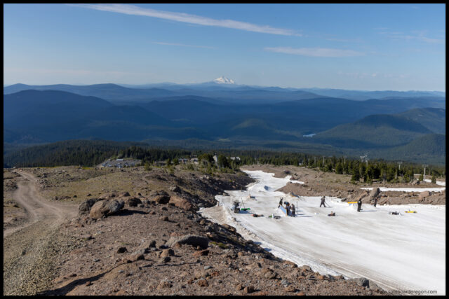 Mt Hood from the road to SilcoxLooking down to the lodge and beyondPark crew working on some featuresJoe & Dan heading up the road to Silcox