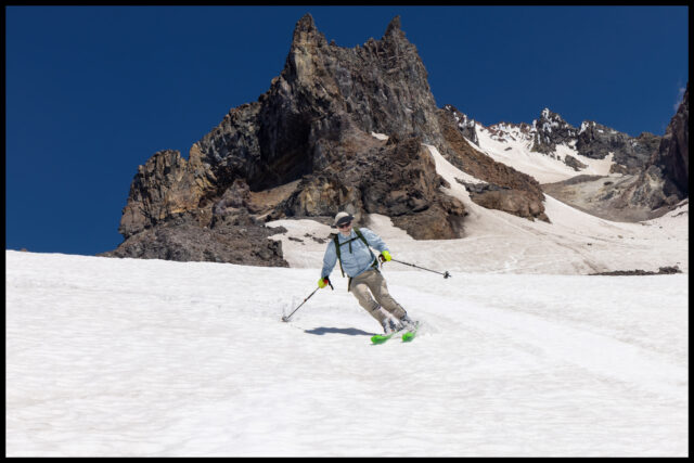 Joe harvesting some July cornSkiing below Crater RockSummer snowboarding high on the ZigzagTurns on the upper Zigzag