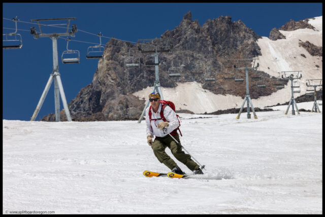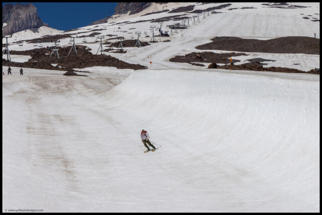 Like the day before, I pulled out the camera and shot a bunch of photos of the Willamette Pass crew harvesting the corn. We hung out on the upper Palmer for a couple of laps, and once the snow started getting sticky, we headed down to hit the lodge after an enjoyable day of clinics and turns.